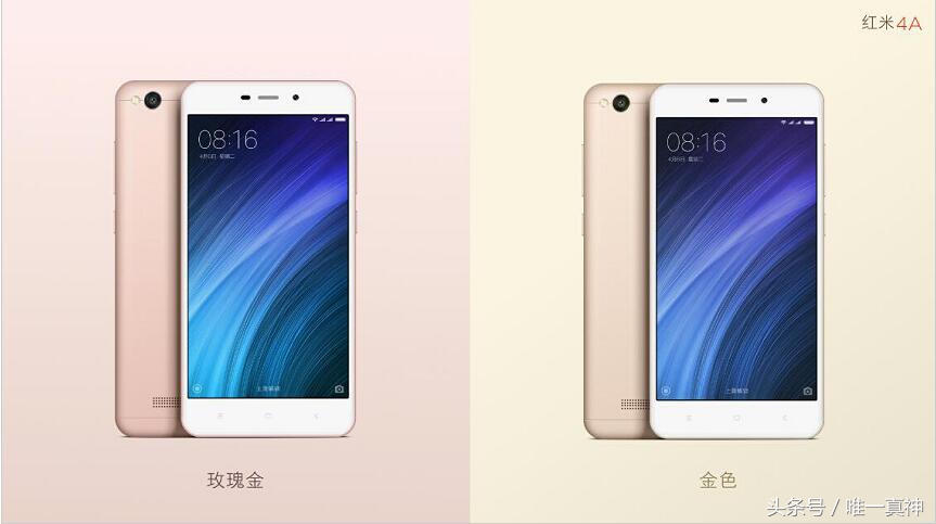红米4A。该设备5英寸720P显示屏,外壳反面选用磨纱层次感工程项目塑料材料,有玫瑰金色和金黄二种颜色,红米4A配用高通芯片骁龙425四核解决、2GB运行内存 16GB储存、3120mAh锂电、1300万适用相位对焦的后置摄像头照相机及其适用三网通全网通。