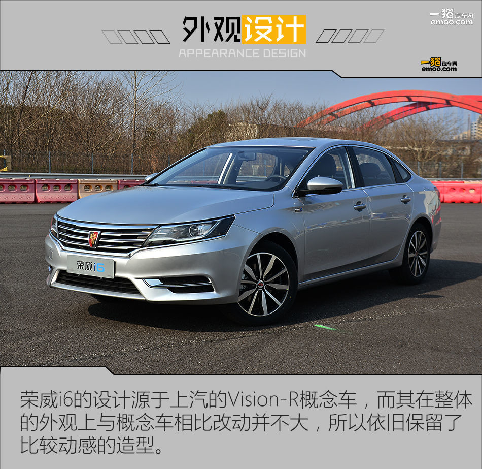 荣威i6的设计源于上汽的Vision-R概念车,而其在整体的外观上与概念车相比改动并不大,所以依旧保留了比较动感的造型。对于荣威来说,RX5作为SUV车型,代表的是“硬派”,而荣威i6作为轿车更偏家用,代表的是“全能”,所以在设计上也没有RX5那样孔武有力,反而多了一份灵秀。