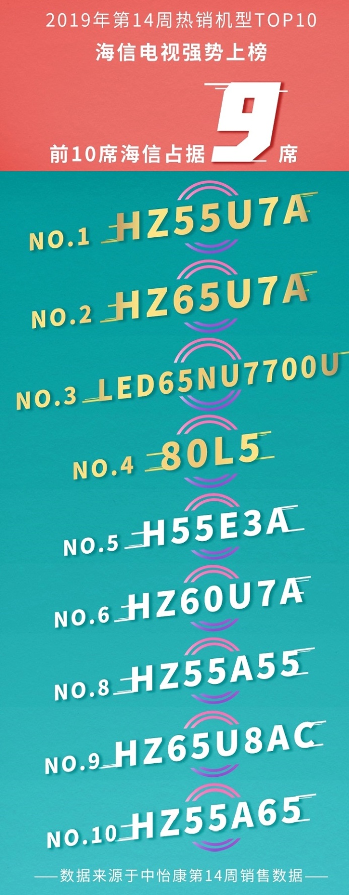 二、据奥维云网的权威性数据信息显示信息,海信彩电线上下畅销榜单的20款型号中,占有了整整的9款!
